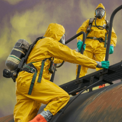 FR Hydroblasting Suit, Yellow PVC, .35mm, 2 Piece Bib Pants & Jacket with Attached Hood